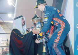 خالد بن حمد يتوج سائق فريق ريدبول ماكس فيرستابن بجائزة البحرين الكبرى للفورمولا وان 2023